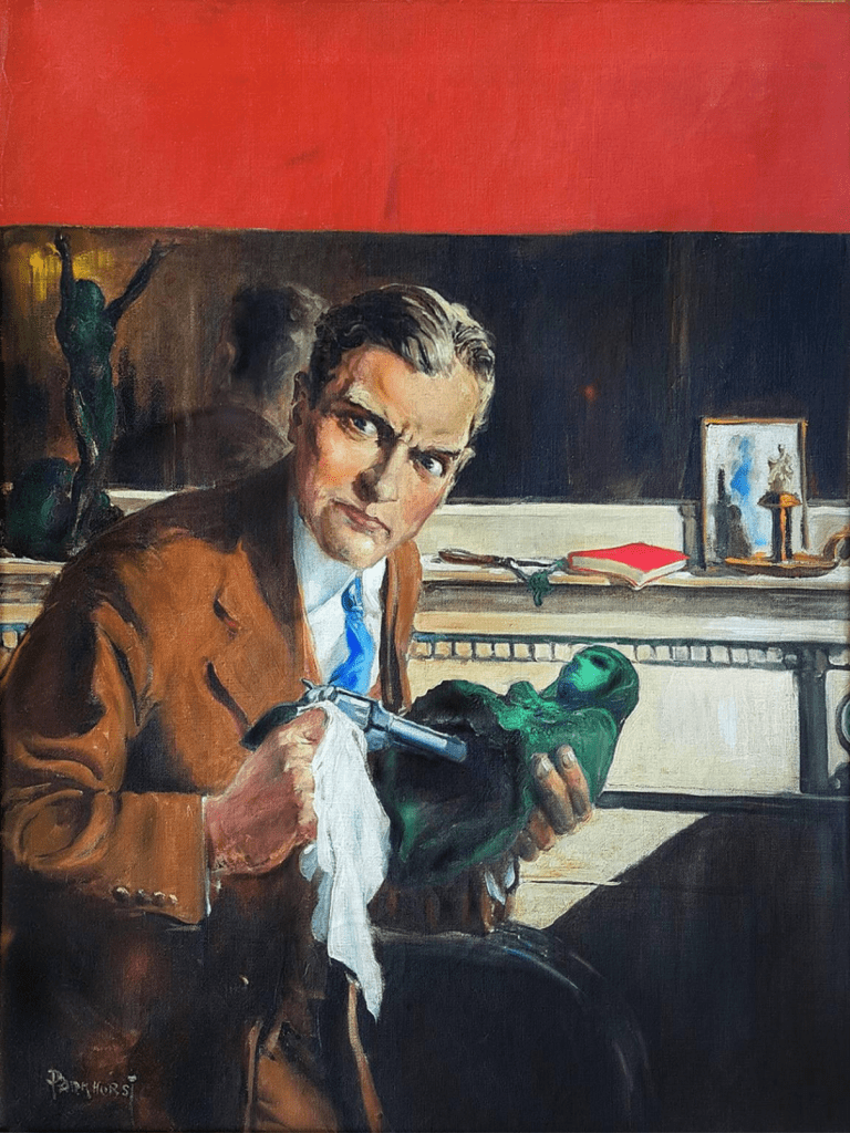 cover art by H.L. Parkhurst 1931, 29 in (73.66 cm) x 23.5 in (59.69 cm), oil on canvas The Complete Detective Cover, February 1931 Share this: Click to share on X (Opens in new window) X Click to share on Facebook (Opens in new window) Facebook Like Loading... Related Published by Seattle Mystery Bookshop We are a bookshop. View all posts by Seattle Mystery Bookshop