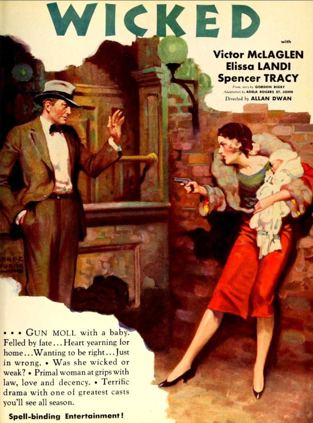 Wicked (1931) is an American Pre-Code prison melodrama about a woman who commits murder while trying to save her bandit husband and bears a child in prison