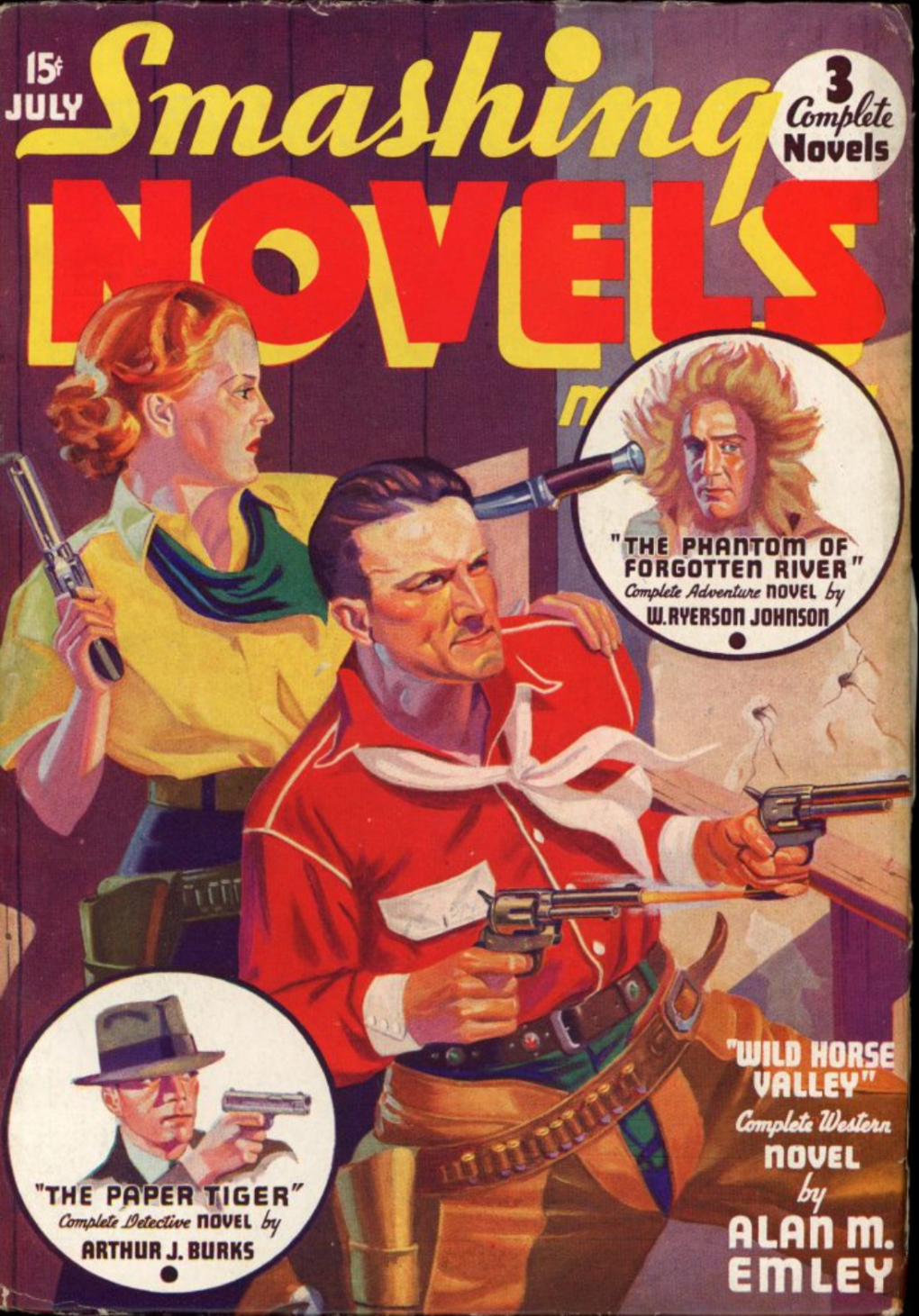 Posted on February 3, 2026February 2, 2026Categories adventure, crime fiction, Hardboiled, magazine, pulp, western fictionTags alan m. emley, arthur j. burks, bullet holes, dagger, smashing novels magazine, w. ryerson johnson, woman with a gunLeave a comment on July 1936 issue ~ cover art by George Gross