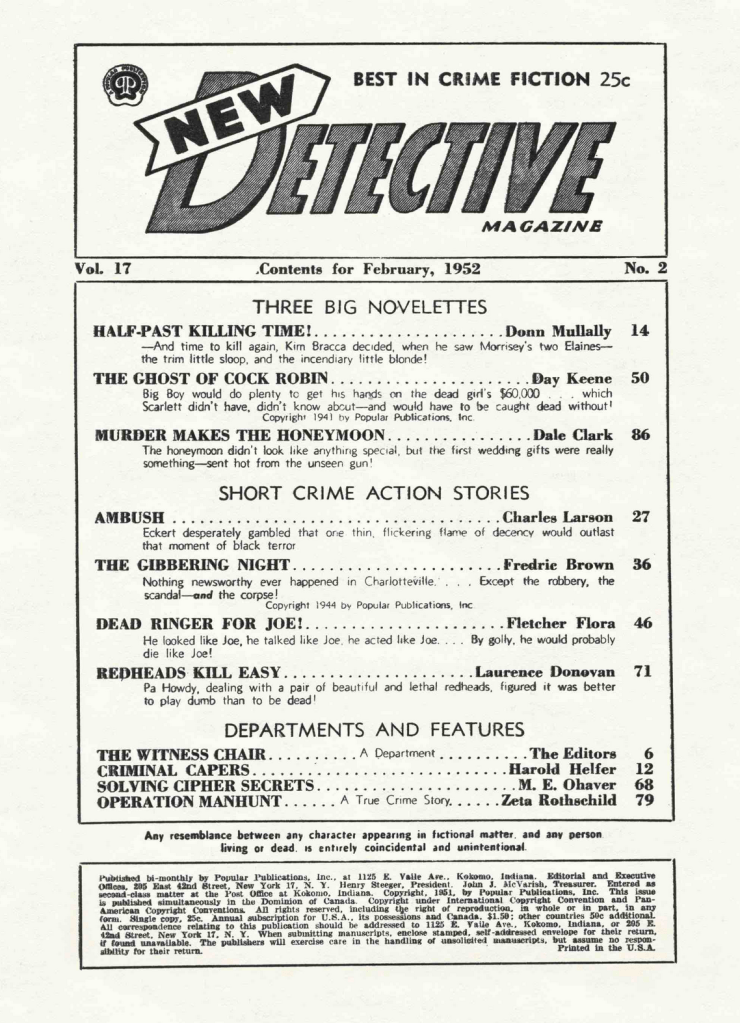 ~ Robert Reeves, “The Cat with a Headache”, 5th of 10 with PI Cellini Smith, reprinted in Dead and Done For: The Complete Black Mask Cases of Cellini Smith (Steeger, 2020), 6th of 12 appearances in BM