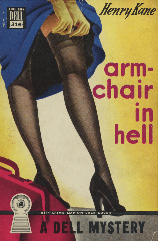 Kane’s first with private eye (Kane preferred “private Richard”) Peter Chambers, a 1947 Simon & Schuster hardcover. The title was changed for the revised 1956 Avon softcover.