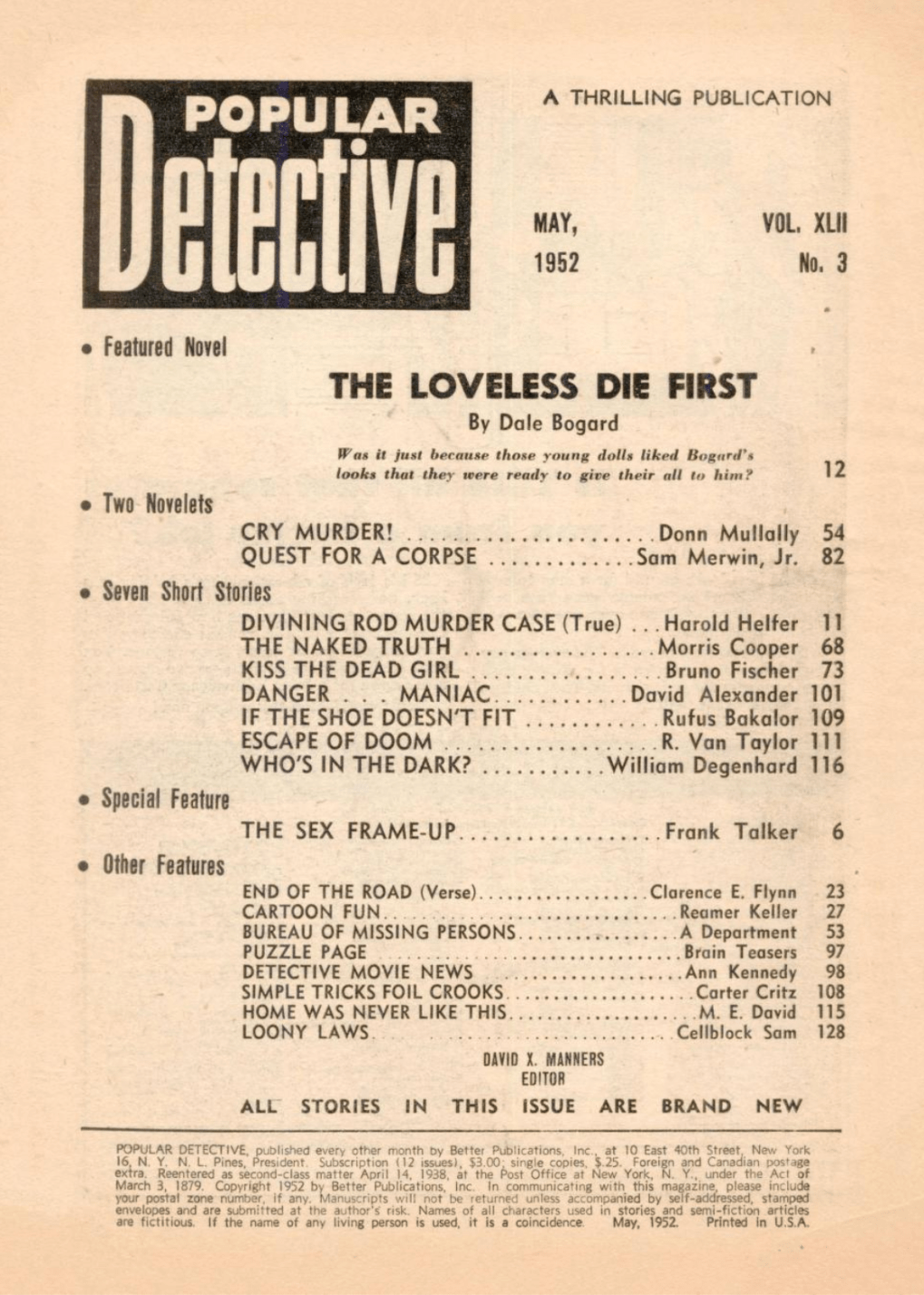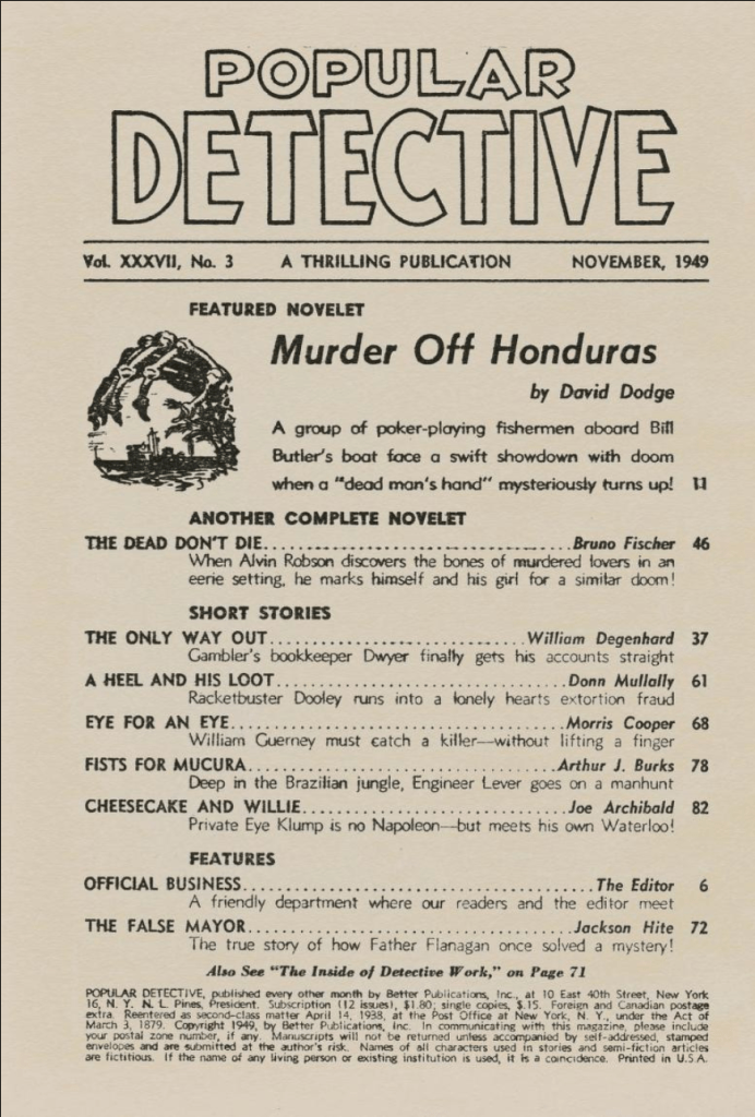 November 1949 issue ~ cover art by Rudolph Belarski November 1949 cover art by Rudolph Belarski better image than previously posted cover art repurposed for 1950 Popular Library edition of Jonathan Latimer’s The Fifth Grave