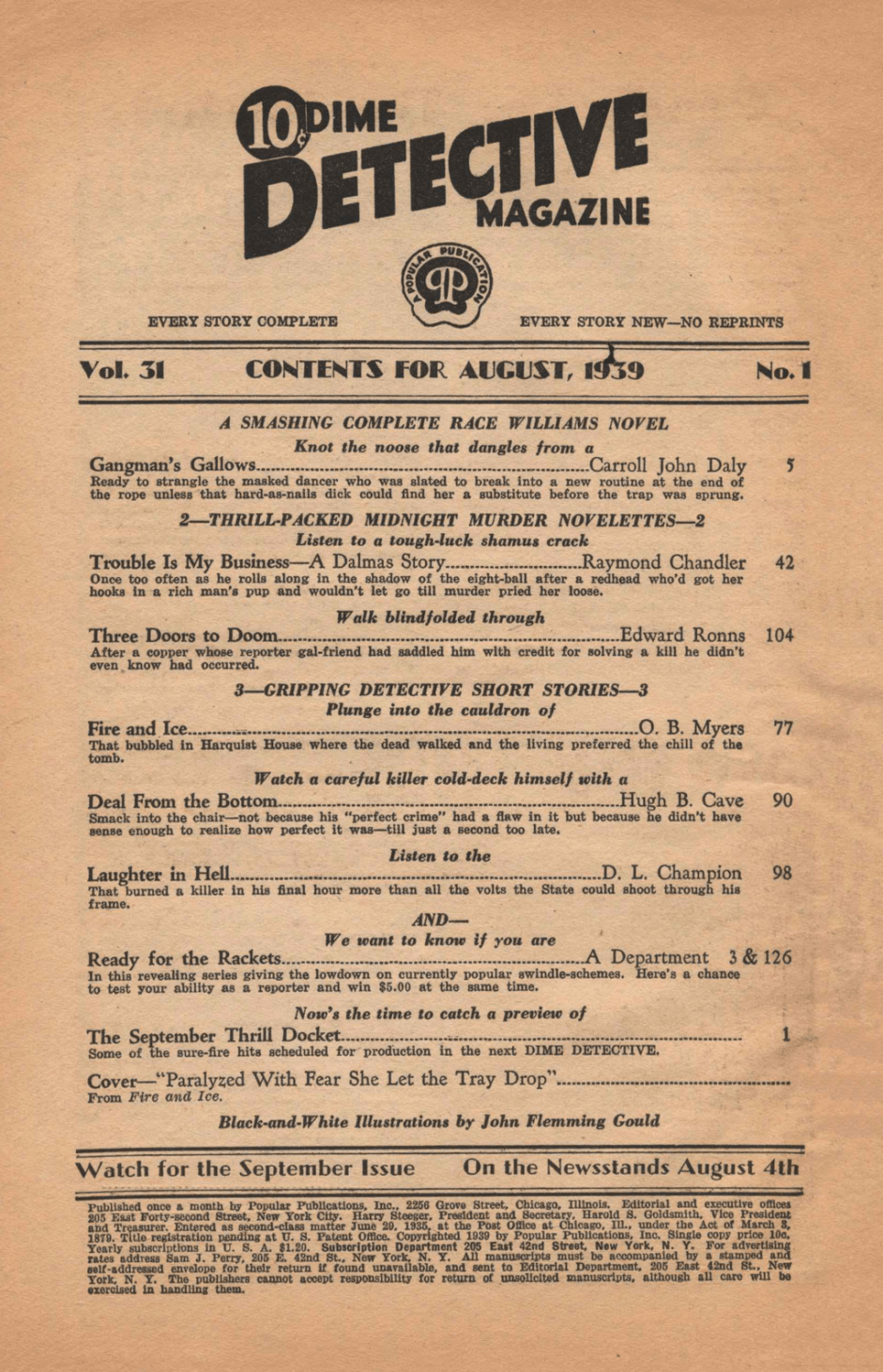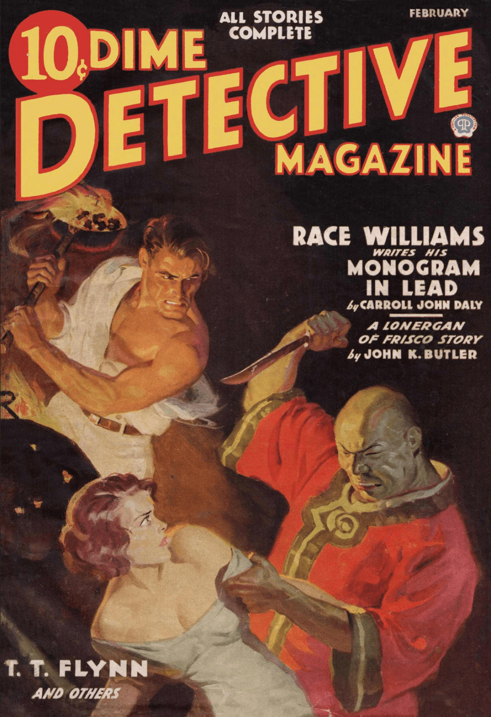 ~ Carroll John Daly, “A Pretty Bit of Shooting”, 29th of 53 with Race Williams, ‘The Flame’ aka Florence Drummond, ‘The Girl with the Criminal Mind’, 2nd of a loosely organized 4-pt. serial; pub. as The Tag Murders (1930)’, reprinted in The Snarl of the Beast: The Collected Hard-boiled Stories of Race Williams, v.2 (Altus, 2016),41st of 71 appearances in BM