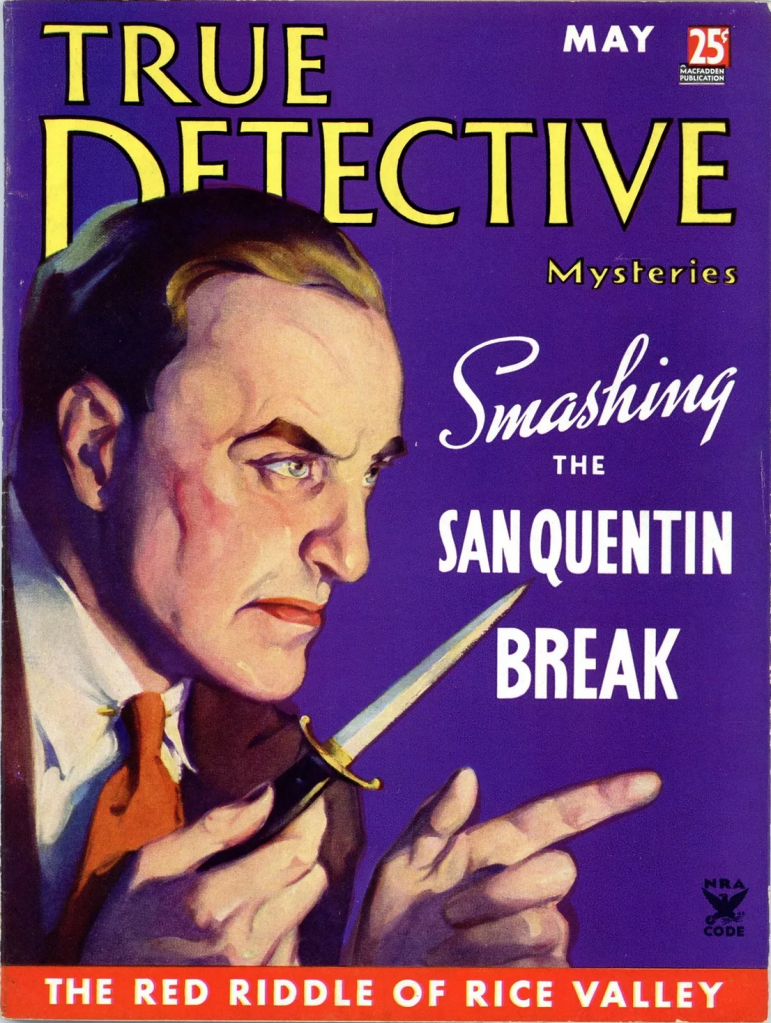Posted on January 29, 2025January 28, 2025Categories Hardboiled, magazine, pulp, true crimeTags dagger, dalton stevens, san quentin, true detective magazineLeave a comment on May 1935 issue ~ cover art by Dalton Stevens
